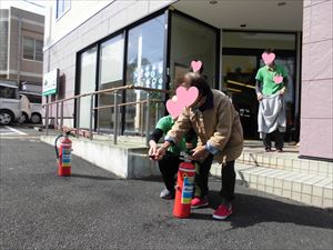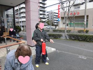 避難訓練!!!! 記事のテーマ:つぶやき,みんなのお楽しみ,今日のみんなの木 ♫ こんにちわ ♫ 今朝はみぞれ交じりの雨での一日のスタートで 寒かったですね。 昨日ですが・・・ 避難訓練を実施しました。 皆様職員の誘導に従って、無事に避難しました。 その後、消火訓練です。 消火器の~~~~ぴ・の・き・お~~~~ 皆様はご存じですか? ぴ・・・・ピンを抜く の・・・・ノズルを外す き・・・・気持ちを 落ち着かせて お・・・・(火をめがけて)押す 参加のご利用者様も職員の声を聴きながら 熱心に消火訓練をされていました。