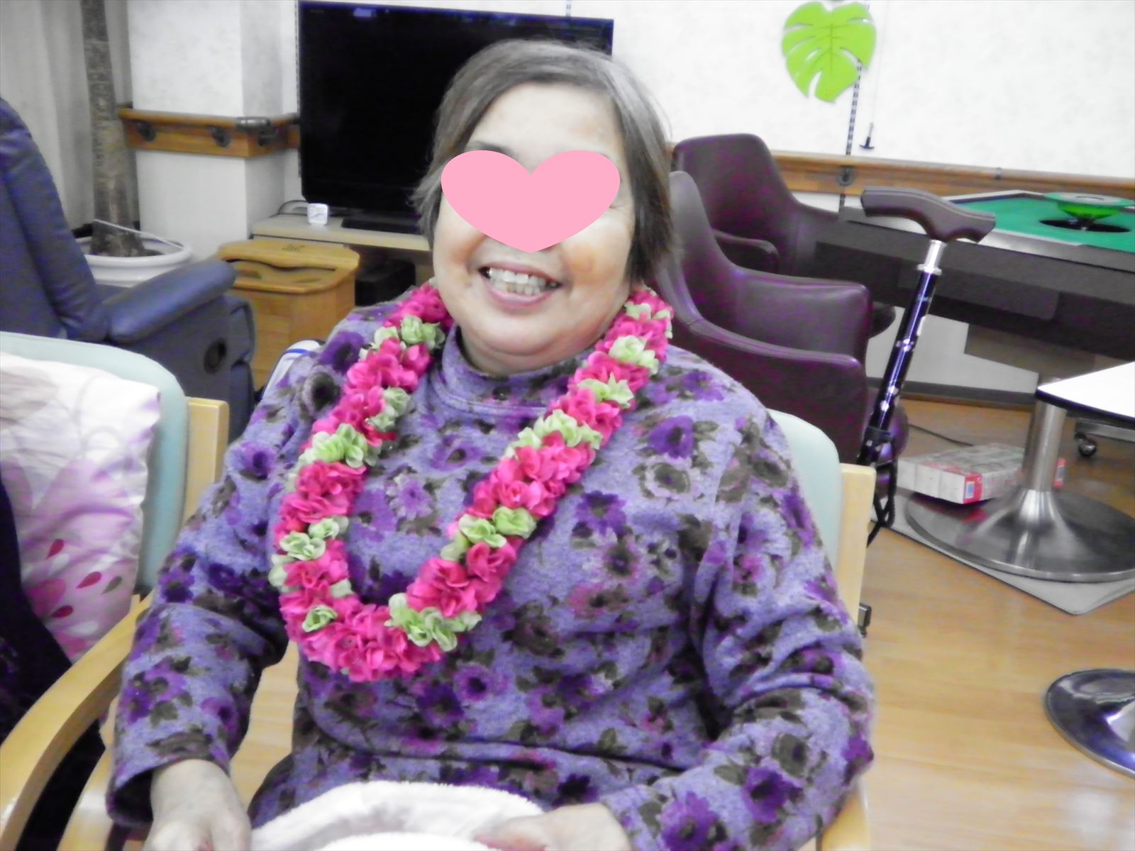最後の2曲は利用者様も一緒に踊ろう!ということで、レイやパウスカートを持ってきてくださっておりスタッフもはかせていただきました~(*^_^*)