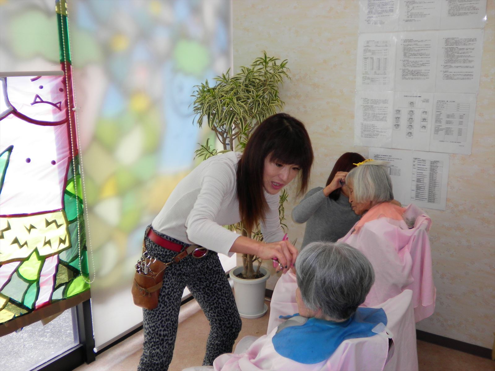 ボランティア・ヘアーカット♪♪ 記事のテーマ:つぶやき,みんなのお楽しみ 今月もボランティアカットに来ていただきました☆ ハンドマッサージで来てくださる美容師さんによるボランティアカットなのですが、みなさん顔なじみということもあり、会話も弾んでいました(^O^) 髪の毛を洗う時にささっと洗えるように短くね~とお願いされる方や、量をすくなくしてほしいという方色々ですが、みなさんとても喜んでくださいましたo(^▽^)o 髪の毛を切り終わって戻ってきた時のみなさんの表情はいつも以上に嬉しそうにされていました♪