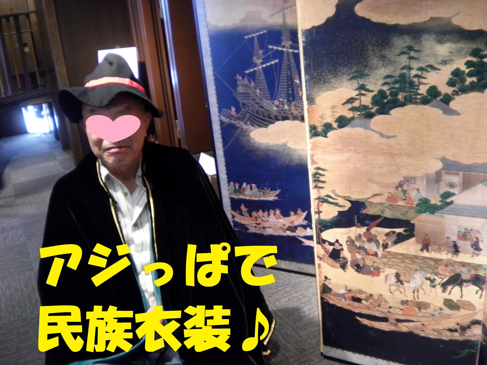 帰りは、入り口に飾ってある山笠の飾り山の前で一枚(*^_^*)