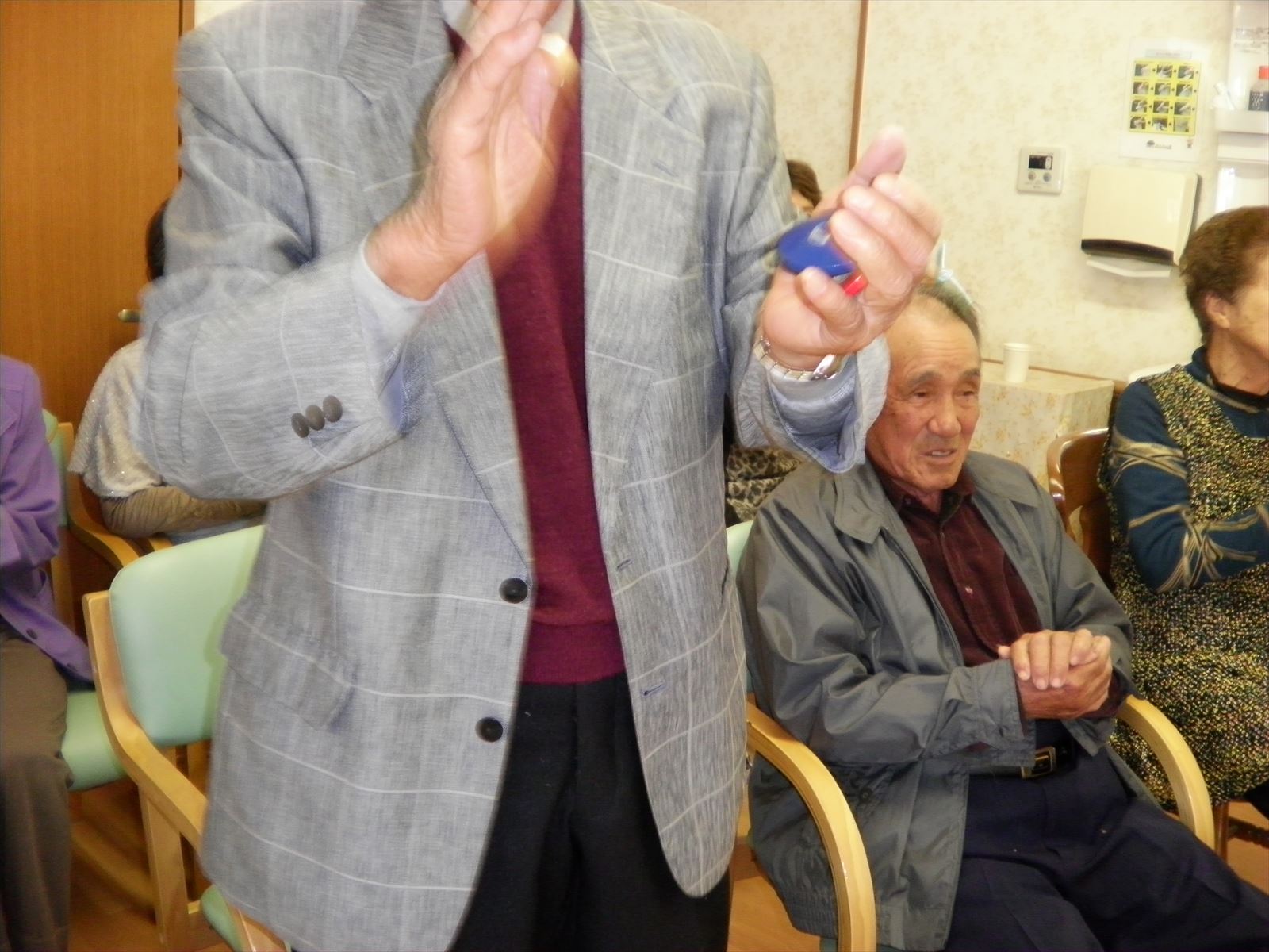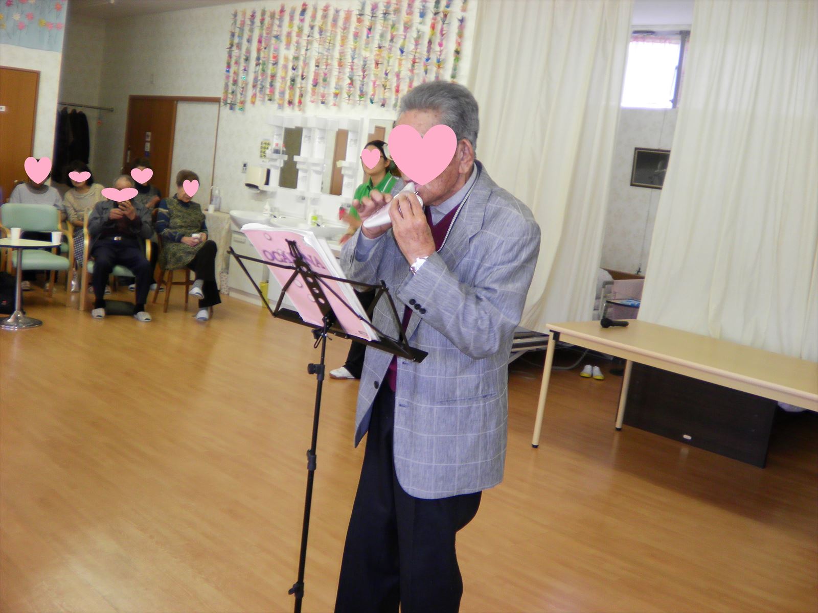 この日は女性の利用者様が多い曜日で、愛好会の方々が歌うのに合わせて口ずさんでおりました(*^^)
