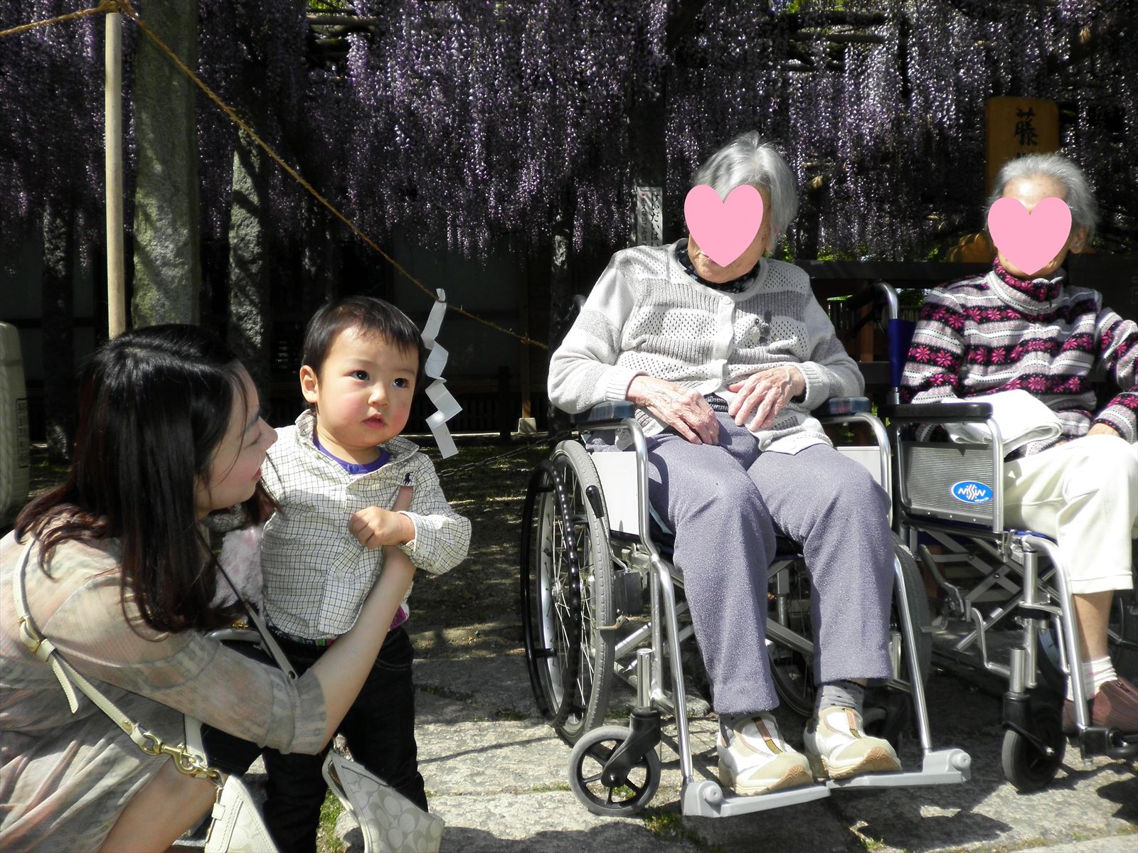 かわいいお客様と武蔵寺(長者の藤)で! 記事のテーマ:つぶやき,今日のみんなの木 昨日に引き続き、まだ藤棚をご覧になられていないご利用者様と武蔵寺へレッツゴー! 武蔵寺で長者の藤を見学していると、かわいいお客様とお友達になりました。 やっぱりちっちゃなお子さんは可愛ですよね。 また来年、成長したお姿を見せて下さいね。たけはるくん!! このしたの写真はご利用者様が撮った写真です。なかなか良いショットなので 載せてみました。