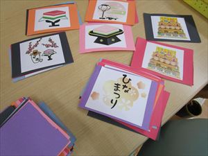 ひな祭りにちなんだ絵を色々と用意し すべてを裏返し、順番に絵を合わせます。