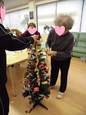 今日はご利用者様と一緒にクリスマスツリーの飾りつけを行いました(^^)