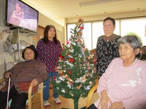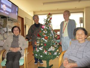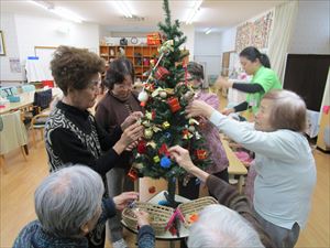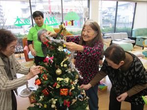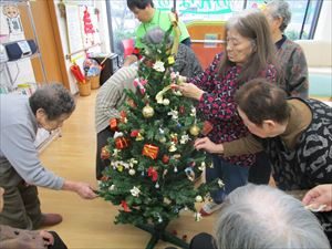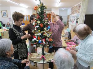 本日は皆様と一緒にクリスマスツリーの飾りつけを行いました。