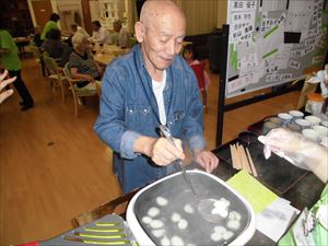 白玉粉を、皆様に丸めて頂き、