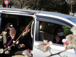 太宰府市へ梅を見にドライブ 記事のテーマ:つぶやき,みんなのお楽しみ,今日のみんなの木 🚙 こんにちは 🌼 最近お天気が続き、日中は暖かくなり春を感じますね。 あまりにも良いお天気でしたので、太宰府市の政庁跡まで 梅を見に出かけました。梅の木の前で車の窓を開けると 梅の花の香り車中いっぱいになり、皆様も「香りがするね。」と 香りを楽しむことが出来ました。 花はまだ満開ではありませんでしたが、久しぶりの外出で皆様喜んでおられました。