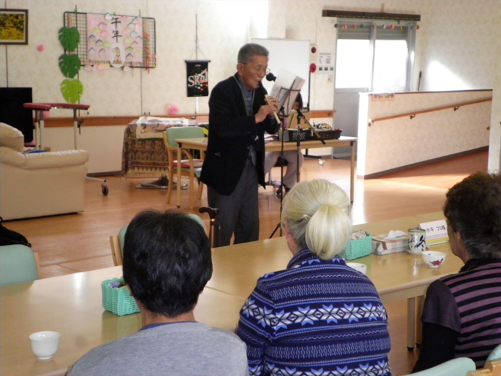 今日のメニューはカラオケ愛好会の皆さんにお歌を歌って頂き、その後はオカリナで四季の歌を含め演奏を行って頂きました。皆様、前回に比べて更にレベルアップされており、非常に美しい歌声と、オカリナの演奏をお聞かせ頂きました。本当に有難うございました。
