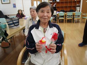 カーネーションと小物入れを今年はプレゼント致しました。