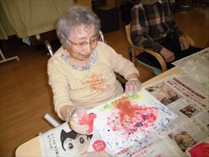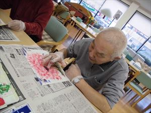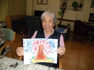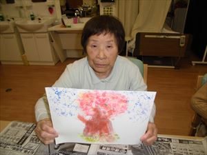 絵具を使いましたが、筆ではなく 手で花を咲かせました。