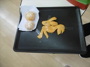 みかんの皮で 何かを作ります。