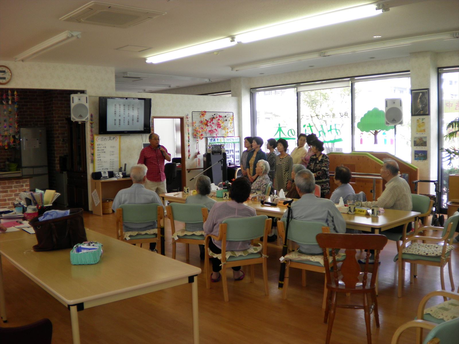 今回は初めて詩吟をご披露頂きました。まずは『名槍日本号』、その後に『ひえつき哀歌』と『あぁ謙信・越後の龍』を続けてご披露頂きました。まだ、発足して日が浅いとの事でしたが、ご利用者様はみなさん、拍手喝采でした。