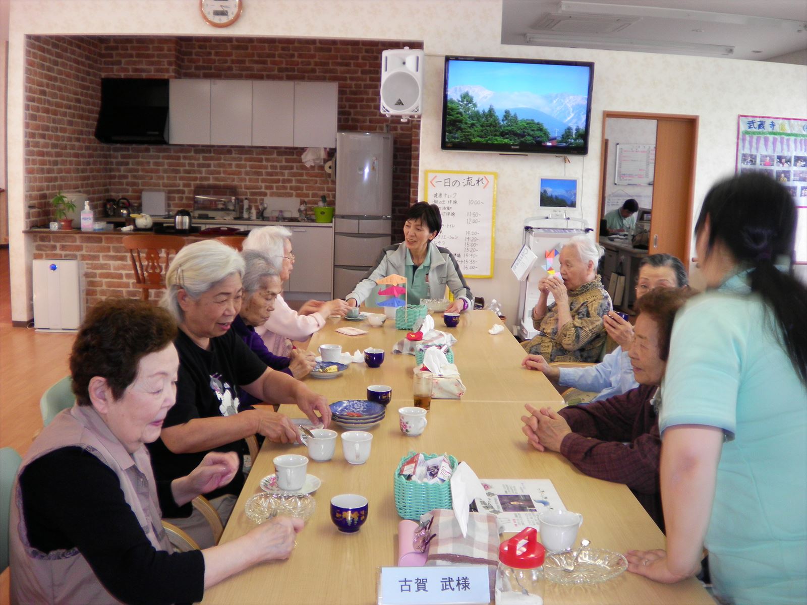 5月のお誕生会 記事のテーマ:今日のみんなの木 本日は5月のお誕生日の方、1名様をご利用者様、スタッフみんなでお祝い致しました。 お誕生日をおむかえになられた方の西暦の出来事紹介、皆さんでのハッピーバースデーの合唱!スタッフからは写真付きのお誕生日カード。 メインは、うちのパテシエ(施設長)が作る手作りスフレチーズケーキ。これがなかなかのものなんですよ。毎回、スタッフも楽しみにしておりますので、パテシエ(施設長)、次回も宜しくお願い致します。
