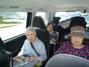 外で昼食の予定でしたが、あまりの暑さで急遽車中での
