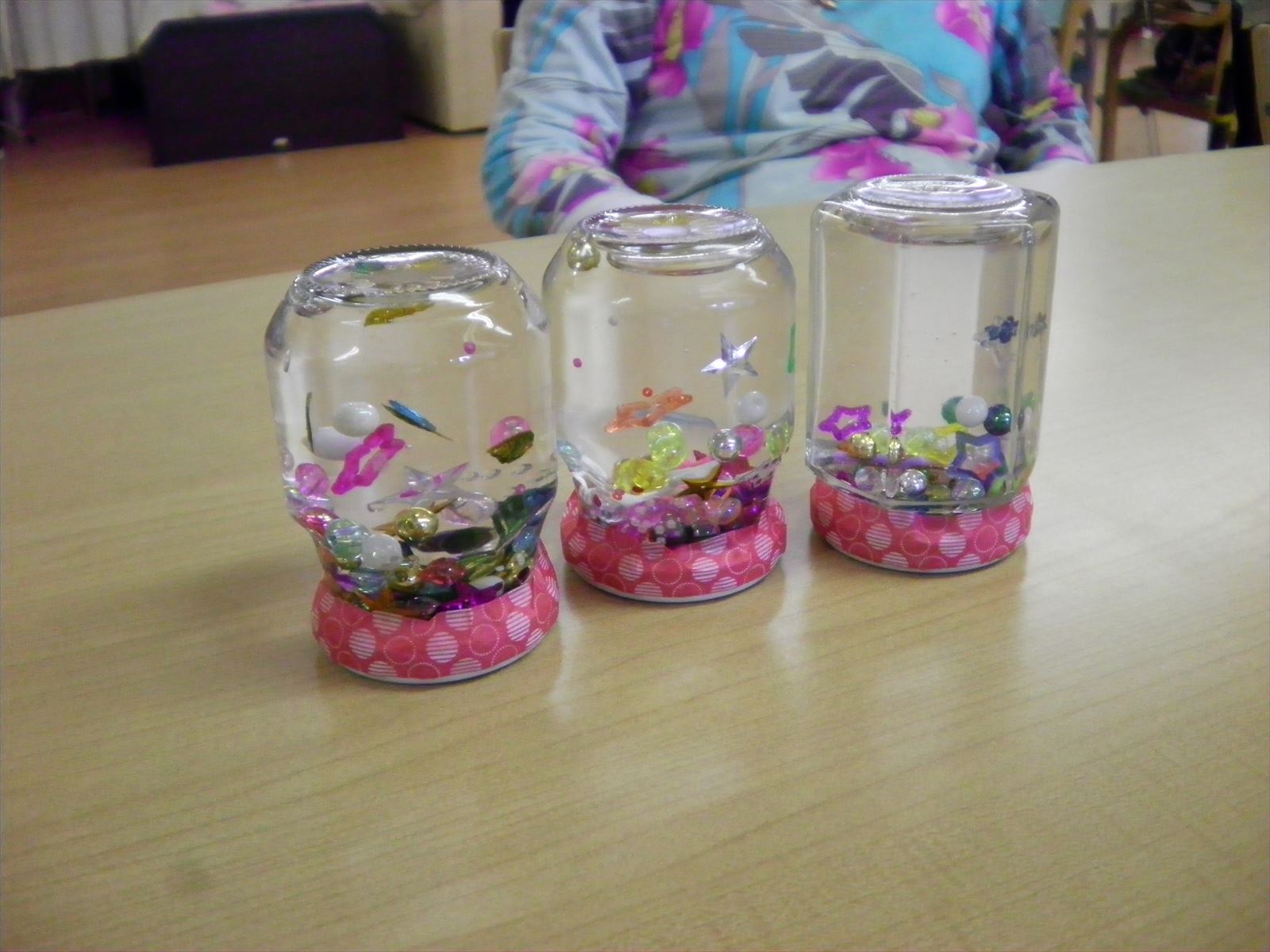 本日はスノードーム作り。。 ジャムの空瓶を使い、その中に自分が好きなビーズを入れ洗濯のりをタップリと入れます。 空き瓶をしっかりと蓋をしてひっくり返すと、ビーズが雪のように空瓶の中でゆっくりと振り落ちて綺麗なんですよ。手…続きを読む