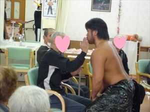 玄海さん来所 記事のテーマ:つぶやき,みんなのお楽しみ,今日のみんなの木 ☆ こんにちは ☆ 今日は、九州プロレスの玄海さんが来所され 皆様と一緒に楽しいひと時を過ごしました。 スタッフも負けずに登場!!! チョップ対決を行いました。 ご利用者様も、玄海さんの筋肉には興味があるようです。 俺も…続きを読む