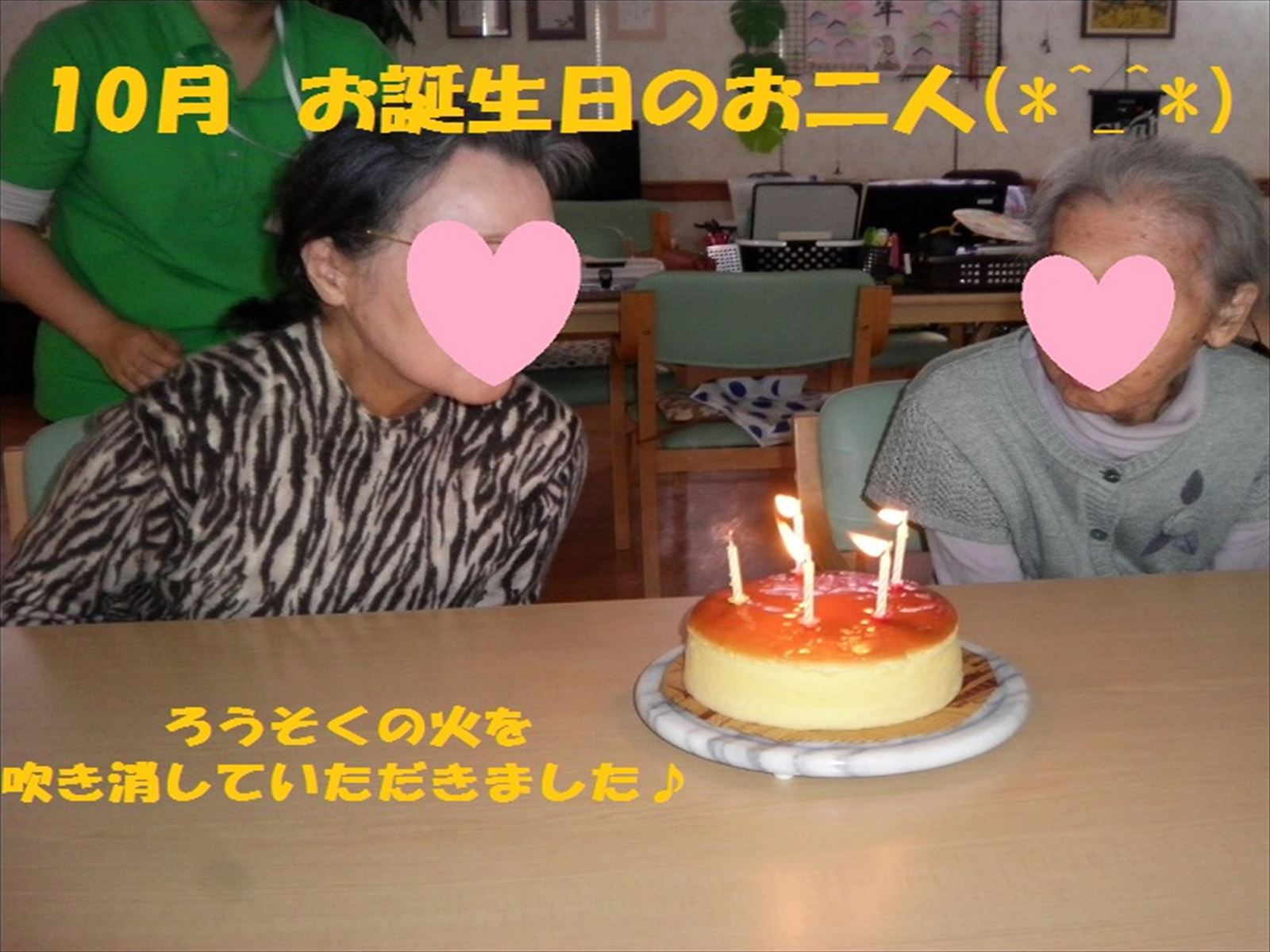 10月は2人のご利用者様のお誕生日がありました! ですので、10月の誕生日会を開きました! スタッフによる手作りチーズケーキと一緒にぱしゃり(*^_^*) とてもいい笑顔でお写真を撮らせていただきました! プレゼントの写…続きを読む